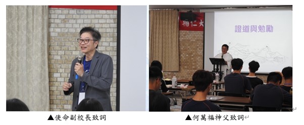 8 月 26 日上午,活動於利瑪竇一樓演講廳正式展開。開幕式由何萬福神父帶領祈福禮,在場幹部們閉上眼睛,靜心感受神父的勉勵與期許,帶著祝福與力量展開接下來三天的研習課程。隨後,使命副校長汪文麟神父勉勵幹部們要以服務精神和積極態度,陪伴住民共同成長。當日課程也涵蓋行政組織運作與響應校長極力推動SDGs永續生活推廣於宿舍生活日常,為幹部建立更完整的服務視野。
