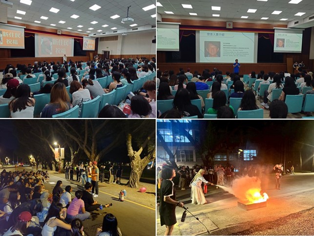 在各宿舍自治幹部帶領下使新生住民能快速融入宿舍生活,規劃與住宿生活常規相關重要事項,有利用戲劇及舞蹈、有結合有獎徵答互動,有以拍攝影片等等方式,用輕鬆詼諧的氣氛來營造宿舍溫馨友善住宿環境;另外為使住民們住的安全介紹生活中突遇地震或火災時的如何應變及逃生的基本觀念,且於會後進行宿舍消防逃生實作演練,加深住民安全意識。