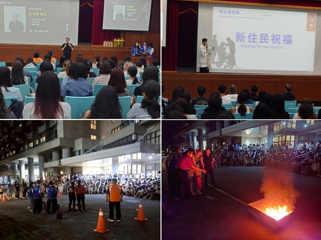 宜聖宿舍於9月25日舉辦活動,由黃神父祈福、使命副校長與宿服中心長官致詞揭開序幕。幹部以中英雙語介紹宿舍規範與設施使用,播放公約宣導影片強化住民認知。消防演練由新北市福營消防分隊消防員實地指導,住民實際操作滅火器及演練逃生路線,並加強急救常識,提升應變能力與防災信心。